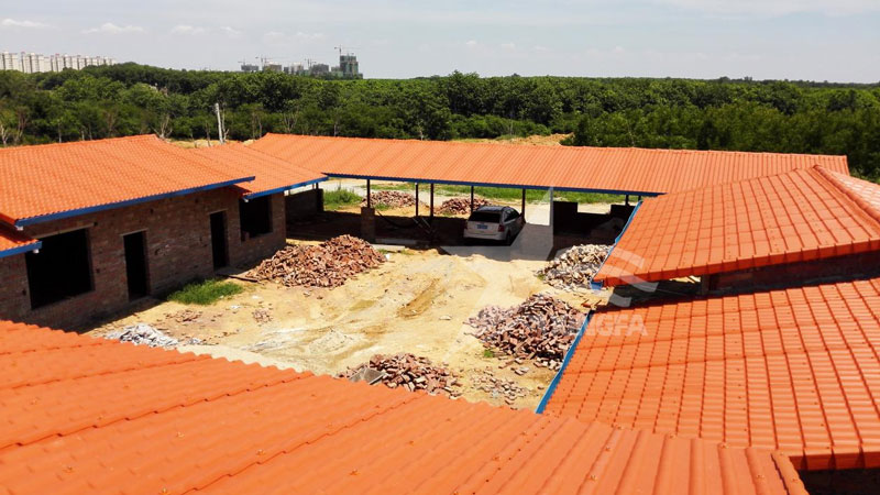 合成樹(shù)脂瓦與鋼板在縱向搭接時(shí),最小必須有200mm的重疊,并貼置兩條止水帶。這樣的設(shè)計(jì)不僅增強(qiáng)了結(jié)構(gòu)的牢固性,還有效預(yù)防了漏水問(wèn)題。